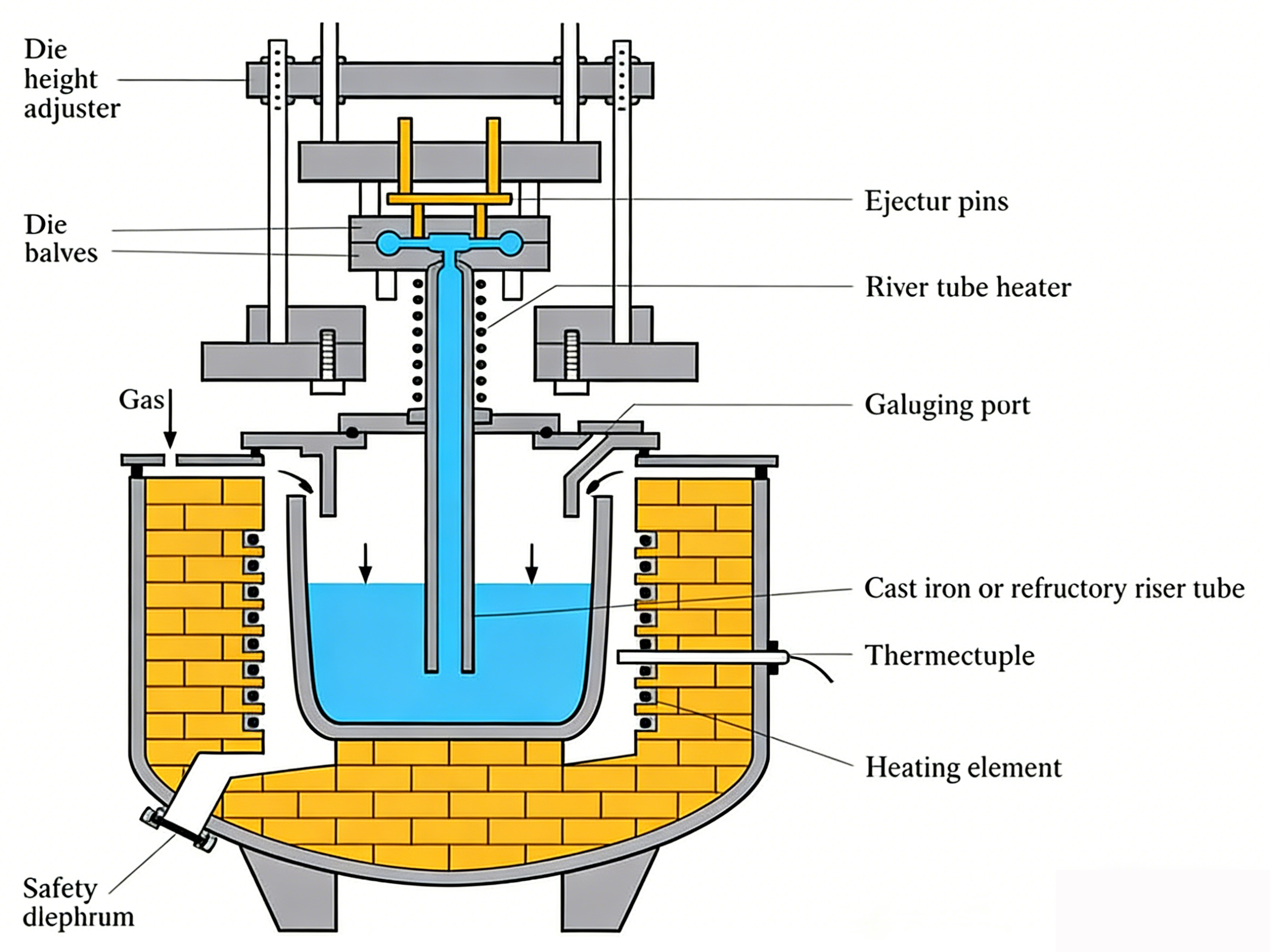 · Molten metal may erode equipment parts like crucibles and risers; localized erosion can occur in high-turbulence mold areas.
